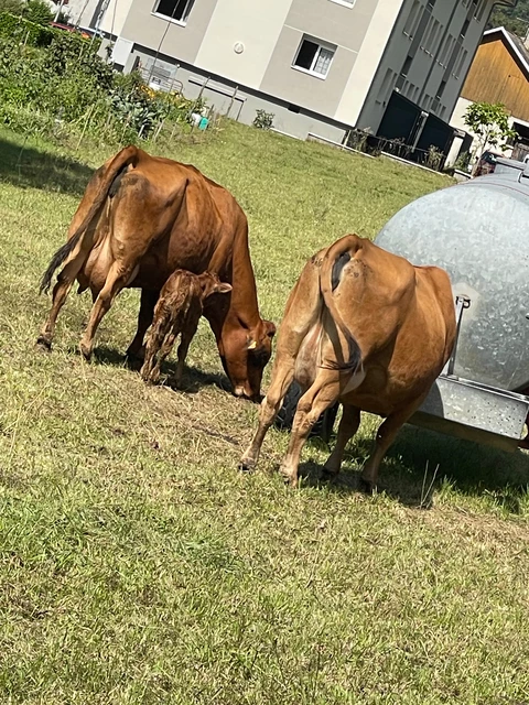 Notre ferme est aujourd'hui composée d'une centaine de vaches laitières de race tarine et autant de génisses. De juin à octobre, 250 hectares d'alpage sont réservés au pâturage ; la traite étant effectuée sur place durant cette période. Cette activité pastorale ainsi que le débroussaillage contribuent à l'entretien des alpages... les pistes de ski de vos sports d'hiver !